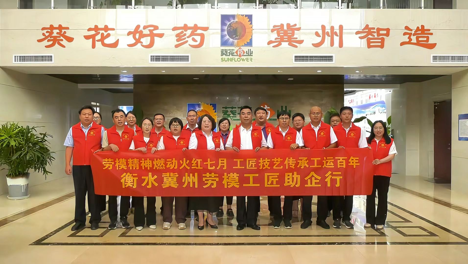 火红七月,党旗飘扬;百年工运,匠心筑梦。值此中华全国总工会成立100周年之际,7月7日,由冀州区总工会主办的“劳模工匠助企行”活动在葵花药业集团冀州分公司(全国模范职工之家)正式启动。27位劳模工匠代表齐聚一堂,以昂扬之姿开启助力企业高质量发展的新篇章。