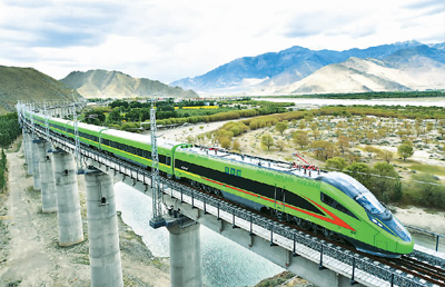 复兴号列车行驶在西藏山南市境内。 新华社记者 觉 果摄
