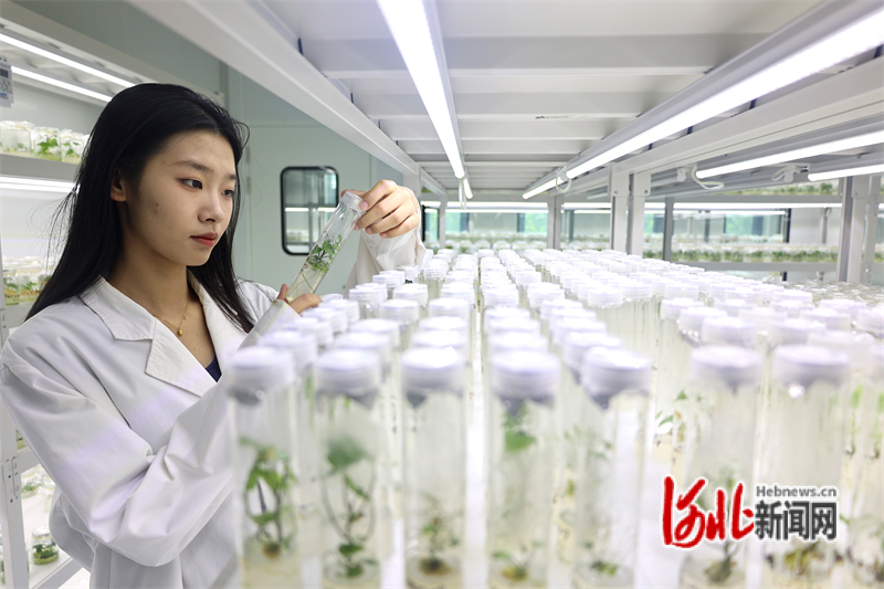 7月21日,在邯郸市禾下土种业有限公司甘薯组培中心,技术人员查看试管苗生长情况。崔志科摄