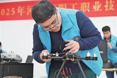 10月19日至21日,2025年河北省职工职业技能大赛决赛无人机装调检修工赛项赛场内,组装无人机时的细微摩擦声、无人机旋翼骤然启动的嗡鸣声、选手偶尔传来的紧张呼吸声,共同构成了竞赛的交响曲。这里虽没有百米冲刺的呐喊,但选手额角渗出的细密汗珠,昭示着这是一场与时间、技术和心理承受力的较量。