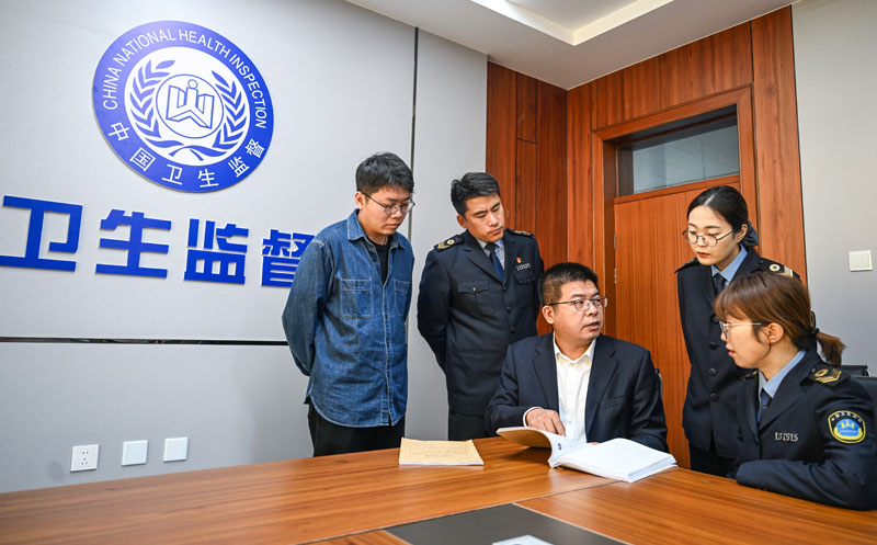 工作人员讨论研究执法案卷中存在的问题