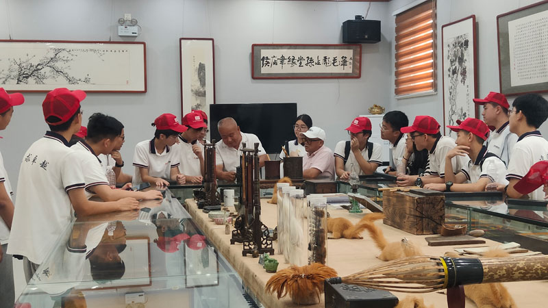 学生们在孙占彪毛笔厂研学基地开展研学活动