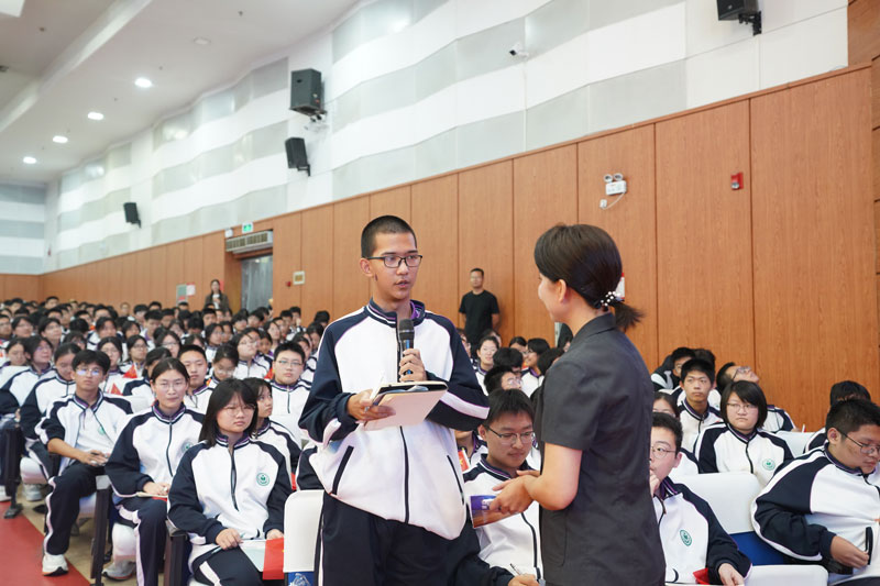 2025年中国女法官协会“巾帼普法乡村行”活动走进衡水中学,图为学生与主持人活动
