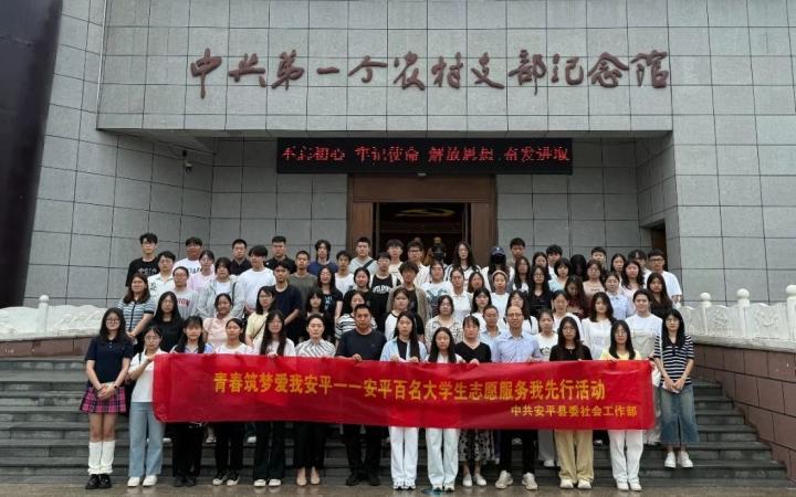安平县在台城村党支部成立了百名大学生志愿服务团,通过参观中共第一个农村支部纪念馆, 服务团成员深入了解家乡的红色文化和历史底蕴,感悟先辈的革命精神,上好社会实践这堂“行走的思政课”。在此基础上,该县引领广大青年充分发挥专业所长,在社区实践中凝聚青春共识,在服务基层中增强青春本领。