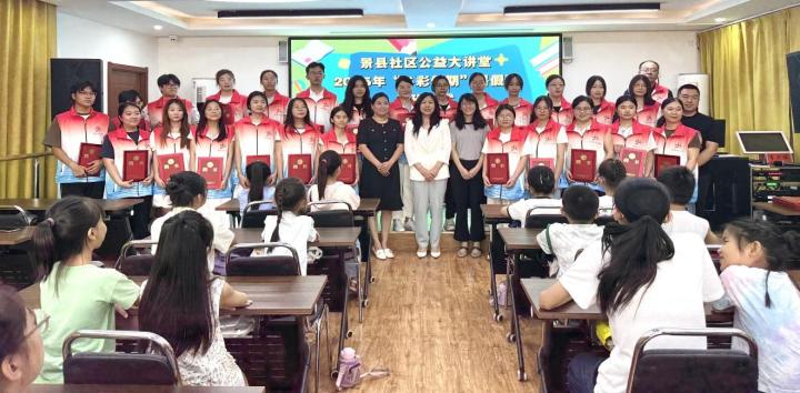 景县招募大学生志愿讲师100多人,为社区公益大讲堂“多彩假期”暑假班的小学生教授户外研学、生活技能、非遗体验、文艺表演等兴趣拓展课。学员优先从新就业群体子女、双职工家庭子女、志愿服务时长超30小时者子女中招收。全县分散设置了16个上课地点、27间教室,既解决了假期孩子无人照看的问题,又进一步提升了社区志愿服务精准度。截至目前,已启动课程78类,累计受众2万余人次。