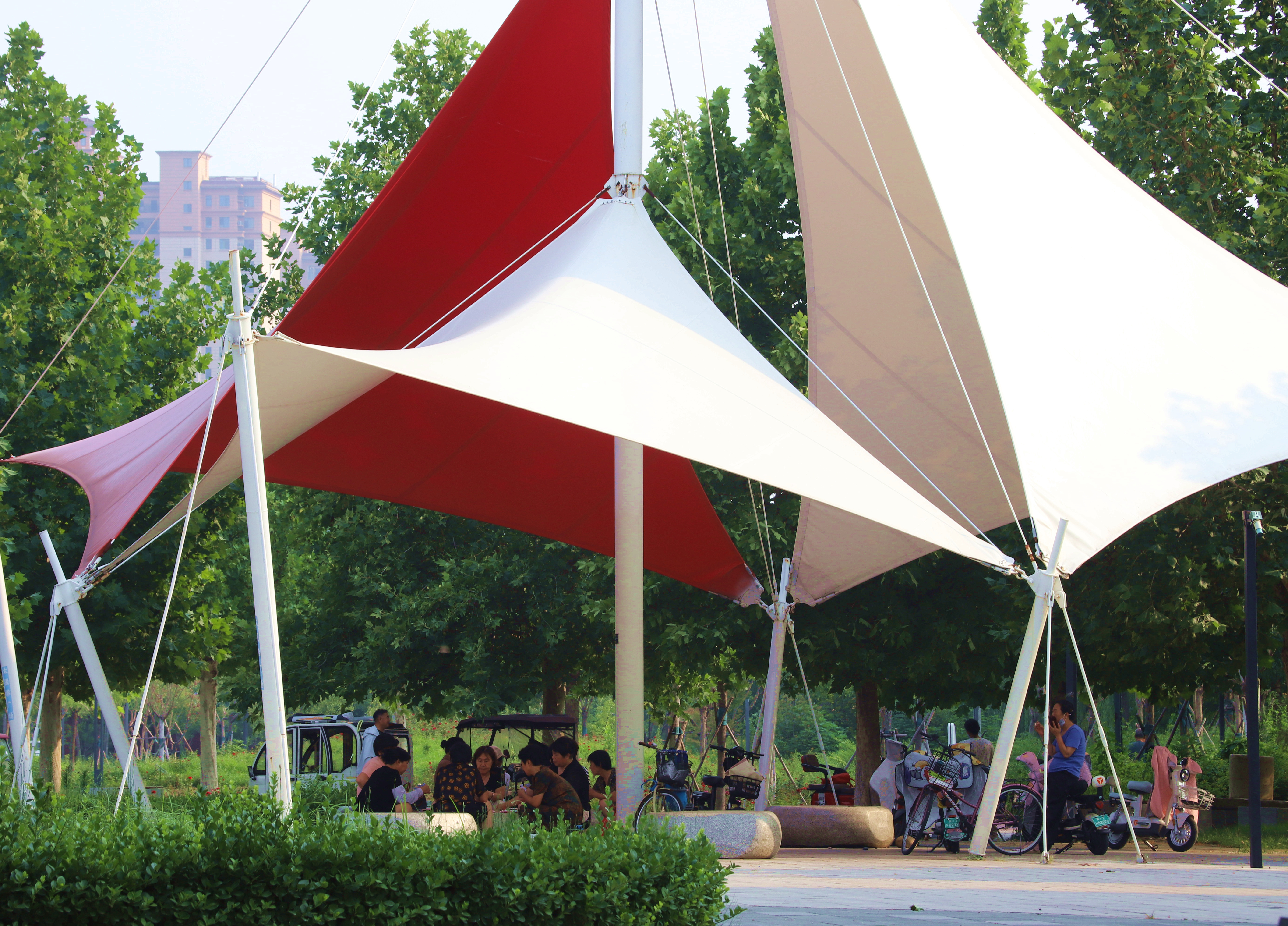 位于衡水市的丰收渠带状公园成为市民休闲娱乐的热门之选。漫步于公园内,仿若踏入一幅生机盎然的画卷。风车悠悠转动,为公园添上灵动一笔;休闲遮阳棚下,人们或低语浅笑,或静静休憩;“I ❤ Hengshui” 标识等景观点缀其间,趣味十足。