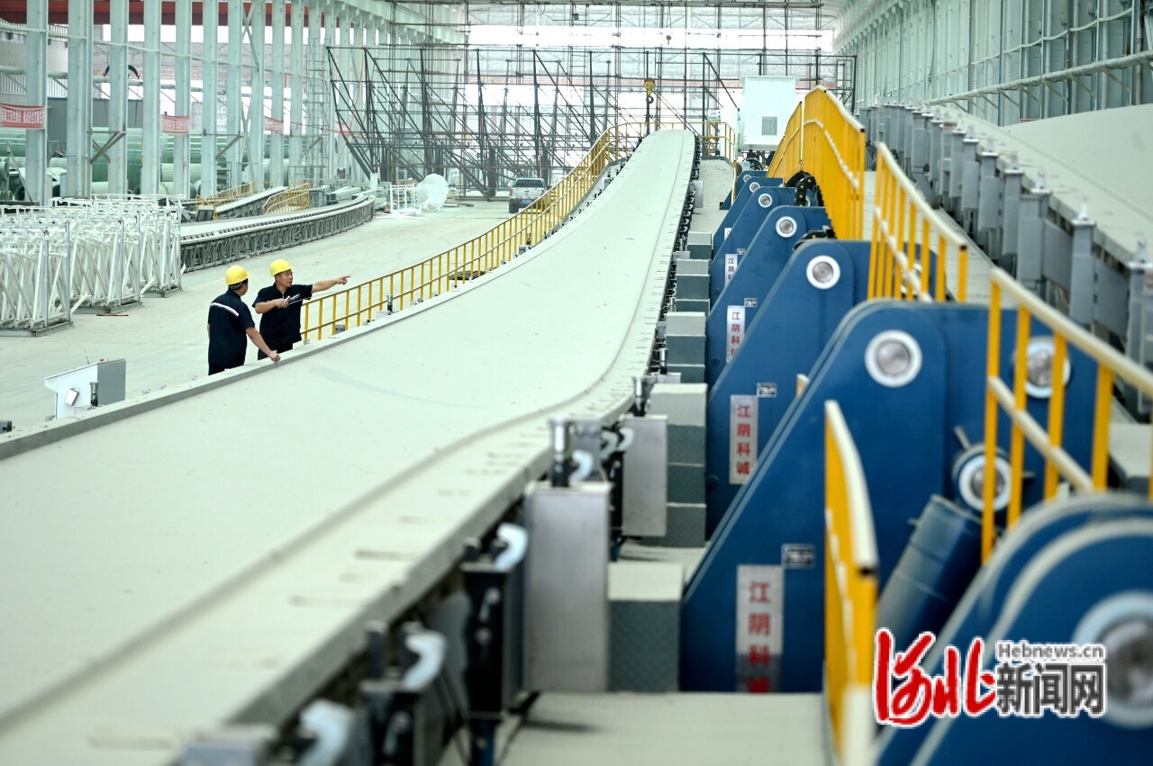 7月21日,河北融鑫新能源科技有限公司风电整机规模化制造项目现场,工作人员调试复合材料叶片生产线。记者焦磊摄