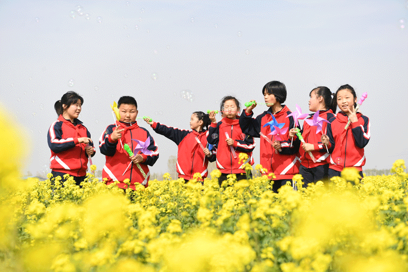 油菜花变身“致富花” 衡水市阜城县蒋坊乡东伊村千亩油菜花为乡村振兴增色添彩