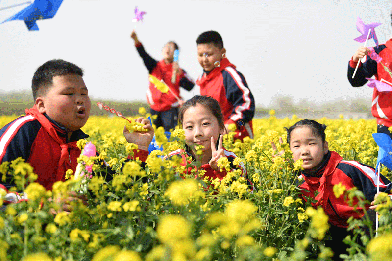 花海深处,蒋坊乡东伊村股份经济合作社负责人伊胜明正在查看油菜花的长势。“以前冬天田里光秃秃的,现在种上油菜花,冬种春收还能赏花,正好填补冬小麦、夏玉米轮作的空档期。”望着长势喜人的油菜花,伊胜明满脸笑容。