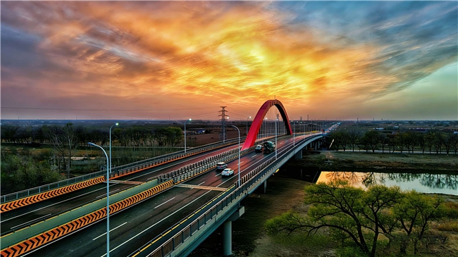 12月1日,青县南绕城道路工程项目建成通车,道路上车水马龙,往来车辆畅通无阻,冬日的晚霞映照在南运河大桥上格外美丽。“以前过境车辆穿城而过,主干道堵成‘停车场’,现在这条‘新动脉’不仅缓解了城区交通压力,更成为了展示城市面貌的‘新窗口’。”项目党支部副书记苗轩宁望着在大桥上前来参观打卡的市民,满脸自豪。(夏寥朦)