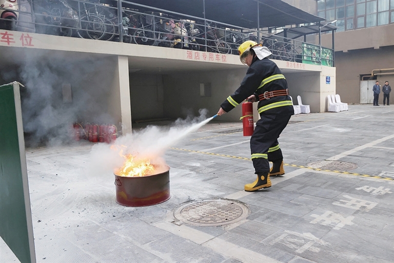 参赛选手在安保消防赛项中进行技能比拼 记者杨磊涛摄