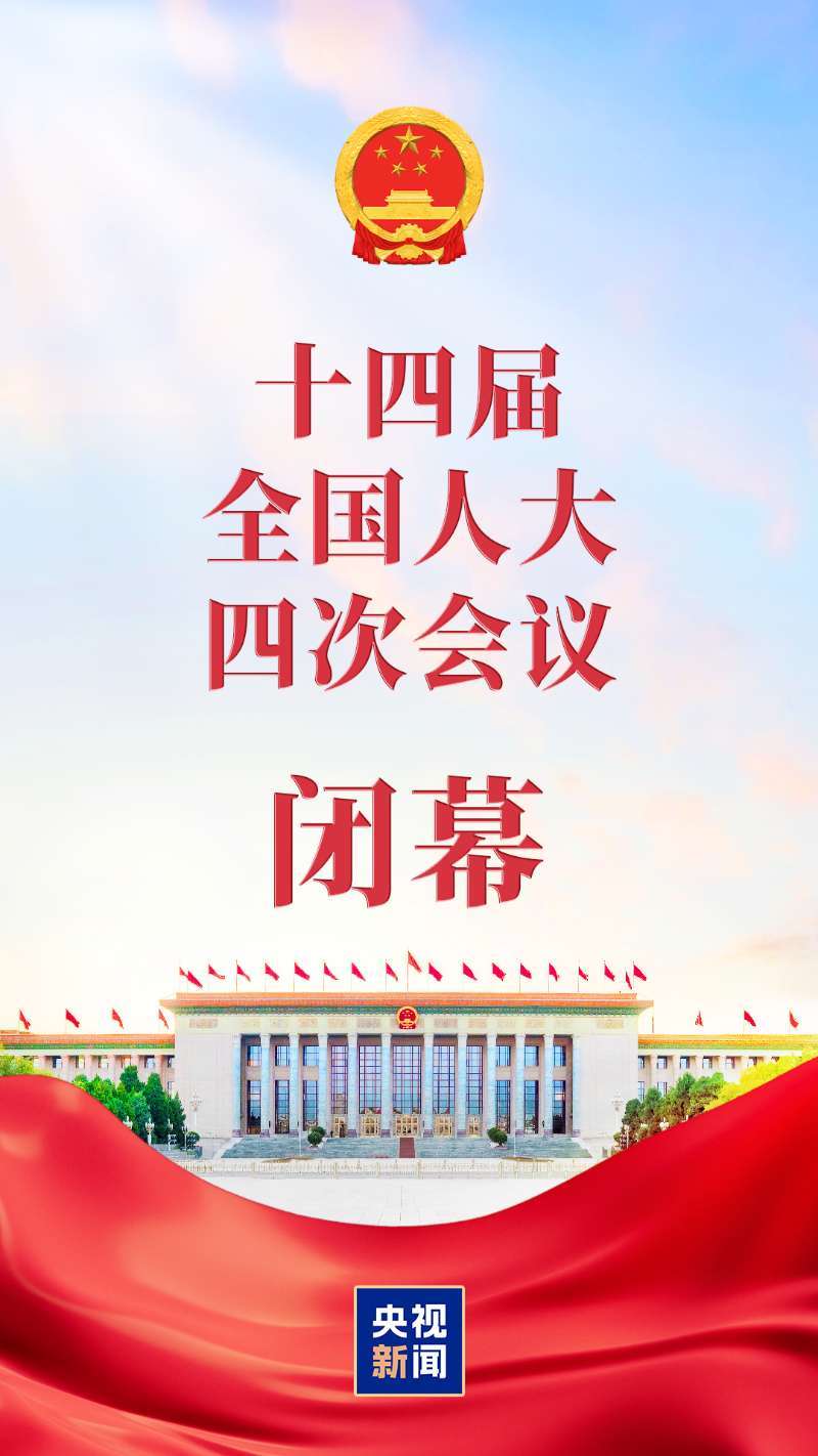 第十四届全国人民代表大会第四次会议在圆满完成各项议程后闭幕。