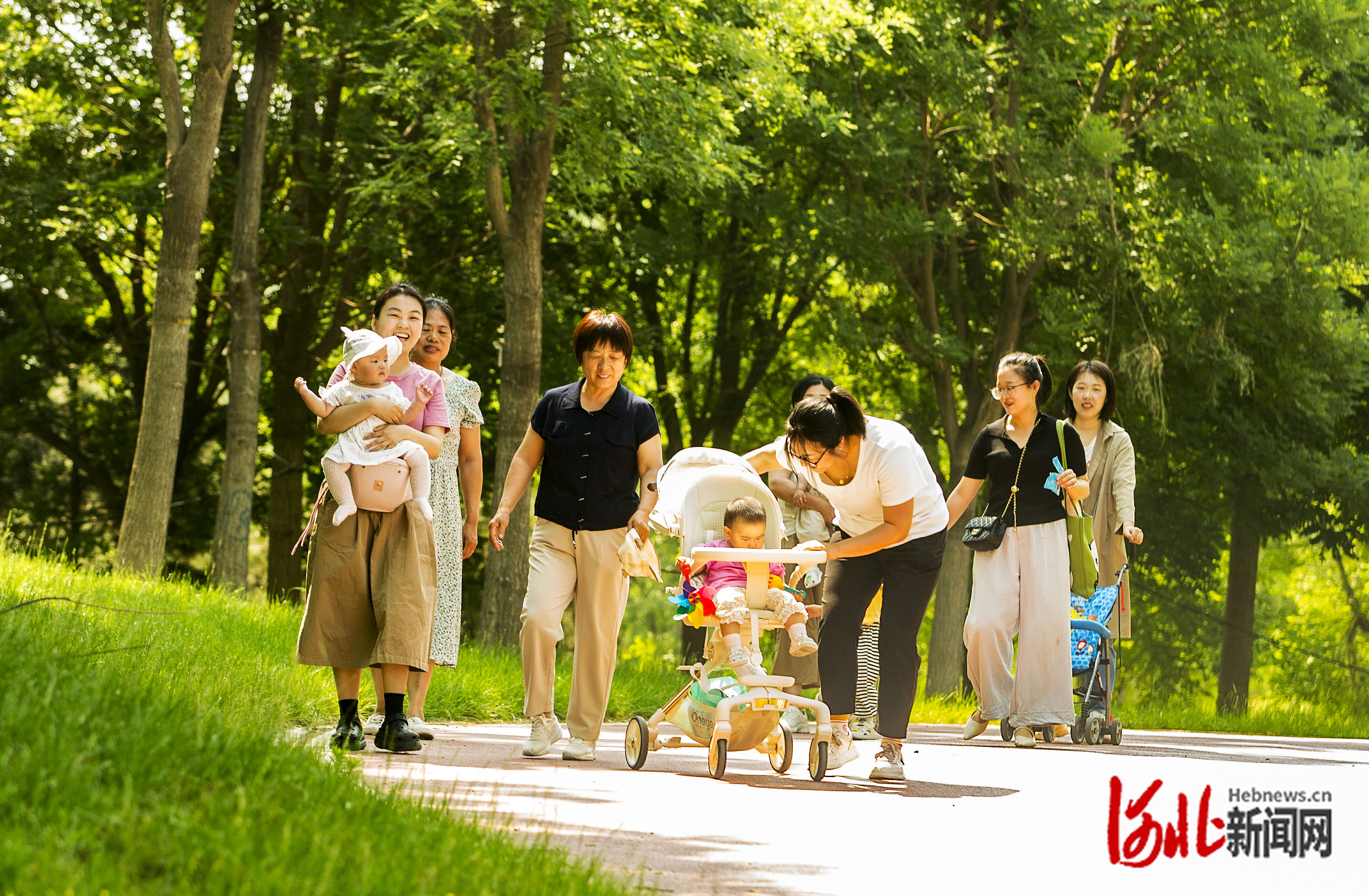 7月13日,雄安新区启动区中央绿谷公园内,来自雄安新区启动区疏解单位的工作人员带着孩子在家门口的公园游园赏景。刘光昱摄