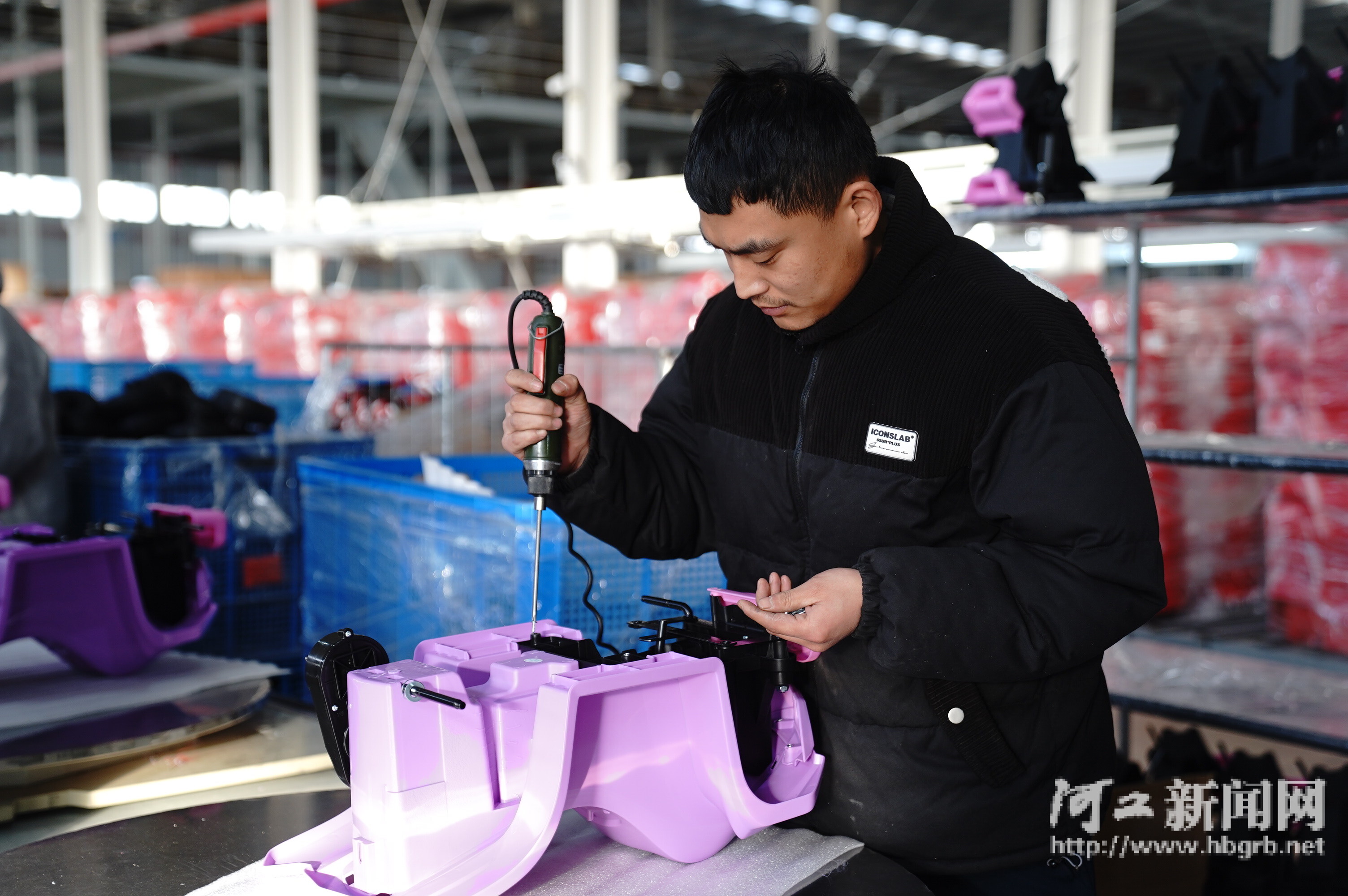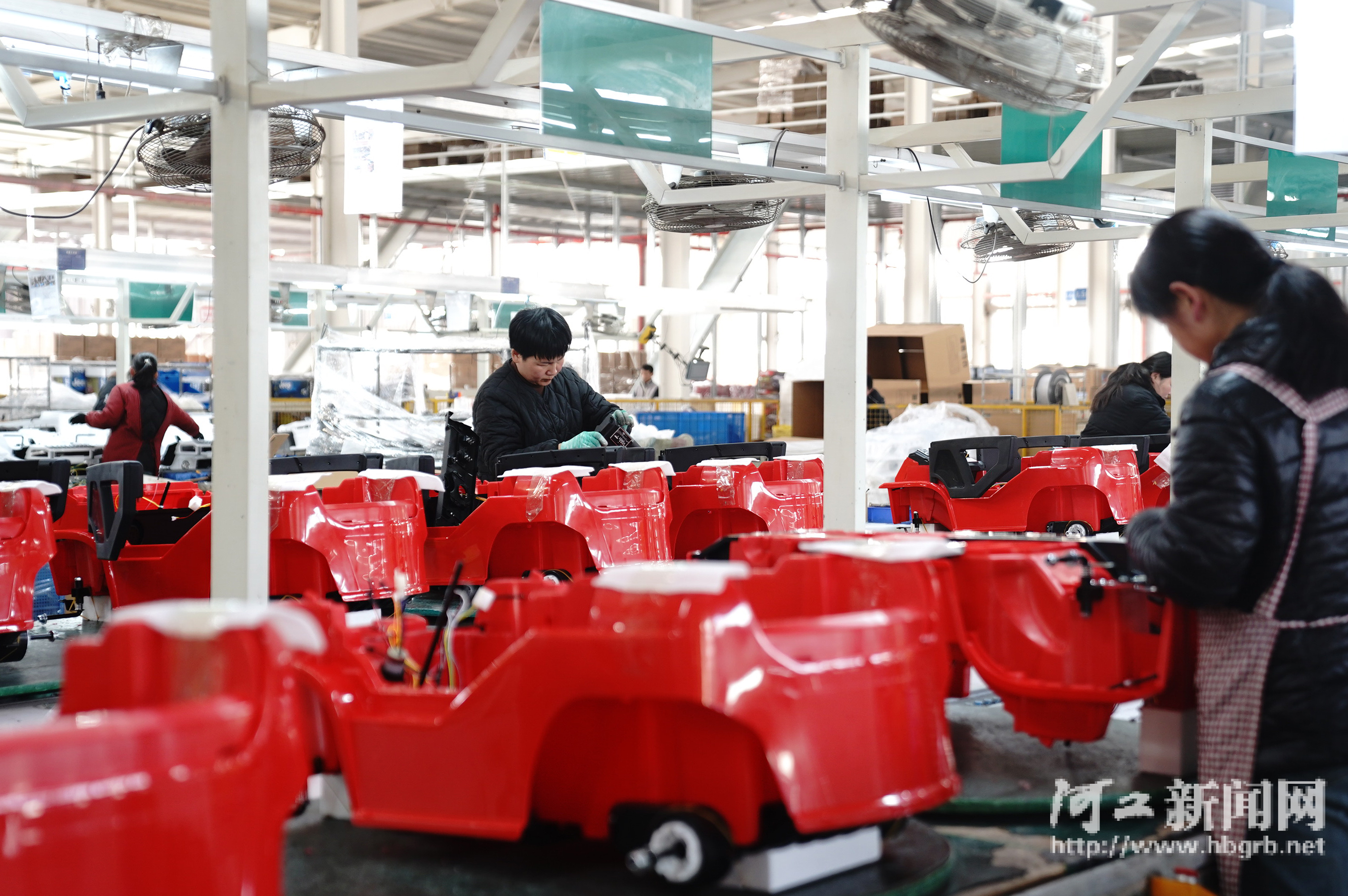 位于邢台经济开发区的邢台市达力斯儿童玩具有限公司员工在赶制出口电动童车订单。