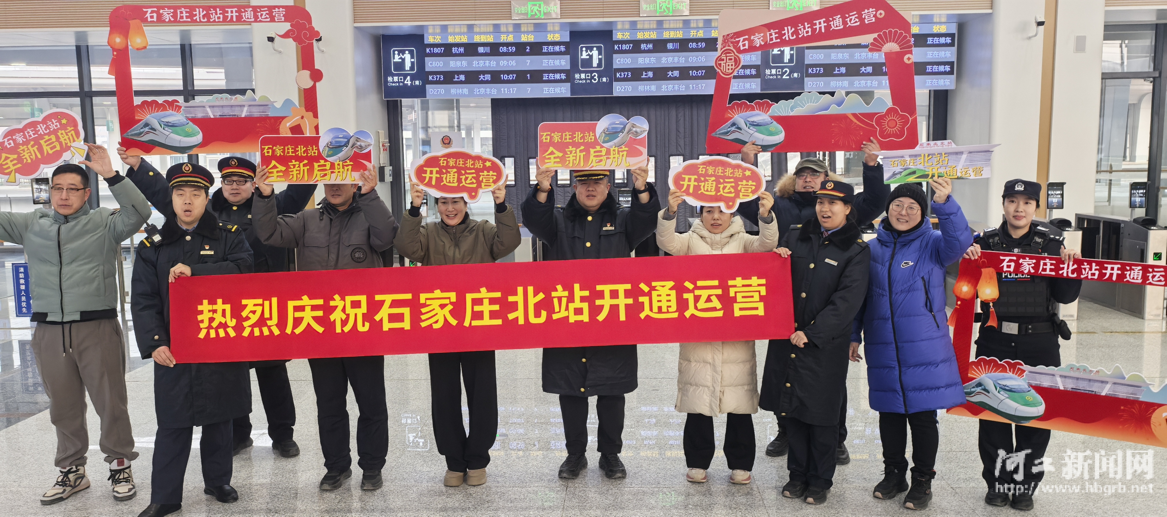 1月26日,经过一年多改造的石家庄北站正式开通运营,当日车站各部门工作人员共同庆祝这一历史时刻。