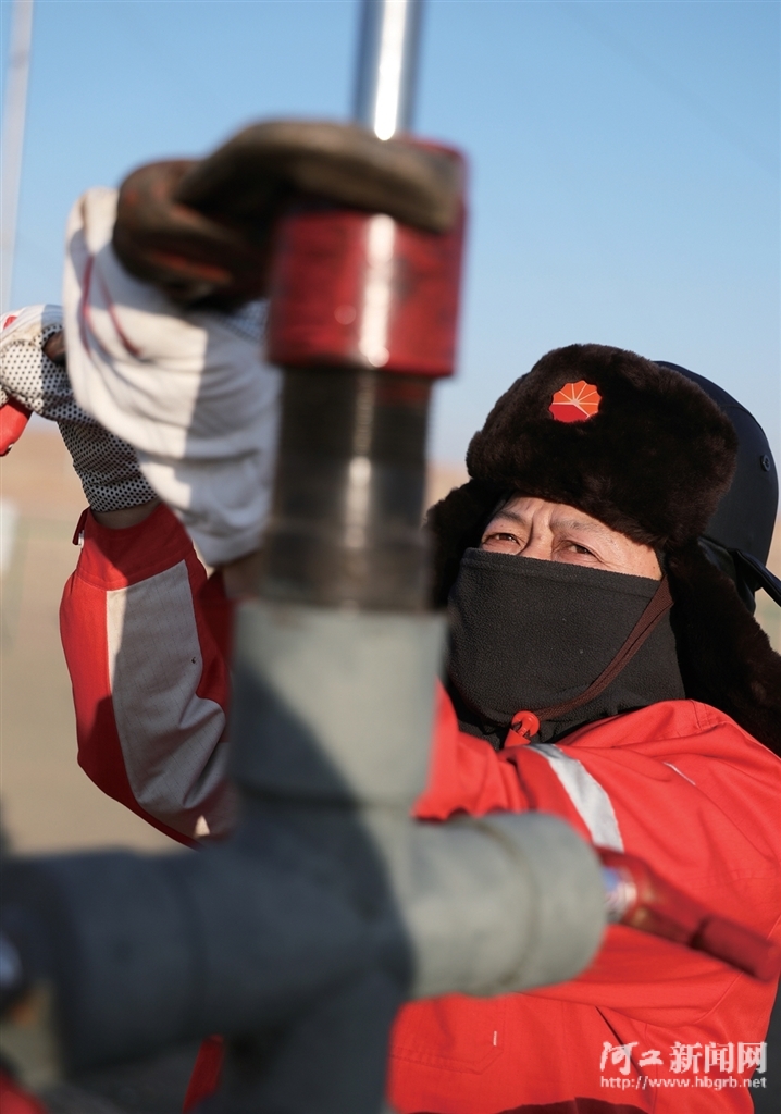 2月8日,于怀文对抽油机进行紧固盘根作业。
