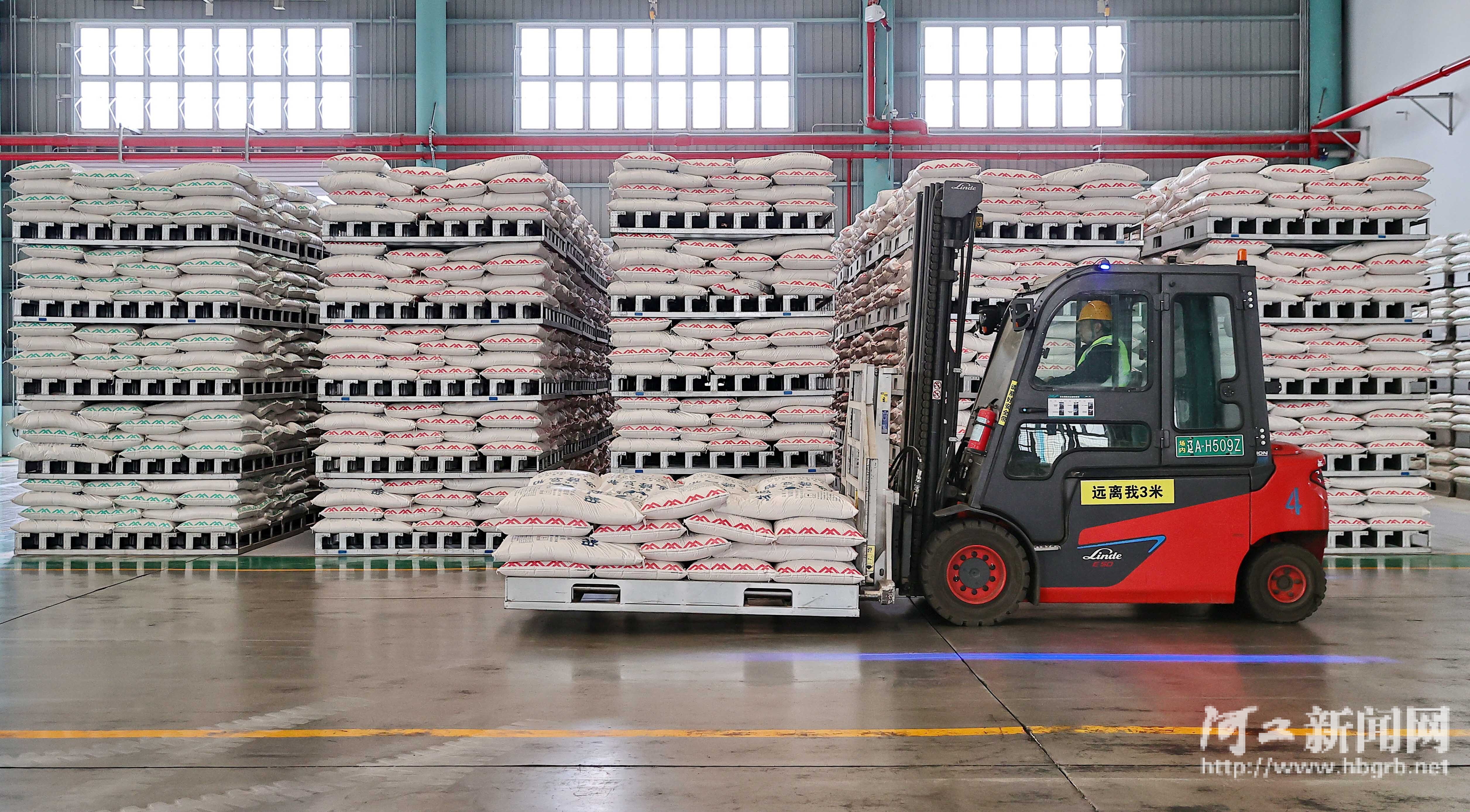 益海嘉里(秦皇岛)粮油食品综合加工园区内,工人正在操作设备装运货物。