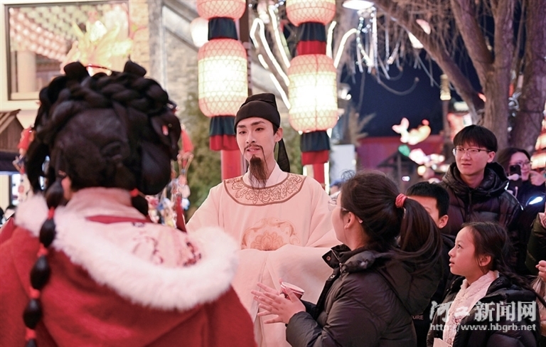 春节期间的唐山河头老街景区,灯光璀璨、游人如织,一袭白衣长衫、手持诗卷的“李白”NPC(非玩家角色)火遍全网,他出口成诗、对答如流,用才情圈粉无数。2月24日,记者走近这位年轻的扮演者,记录他的日常,也感知一座工业城市向文旅新城转身的坚实脚步。