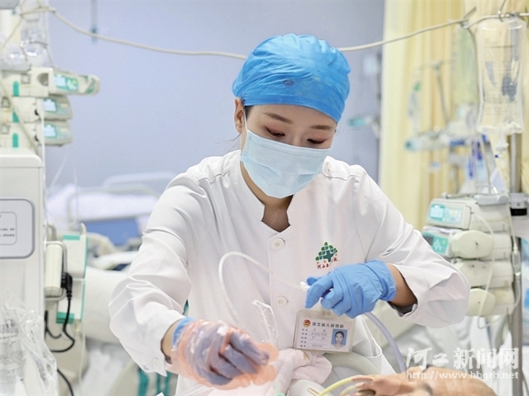值班护士李静为患者做插管治疗