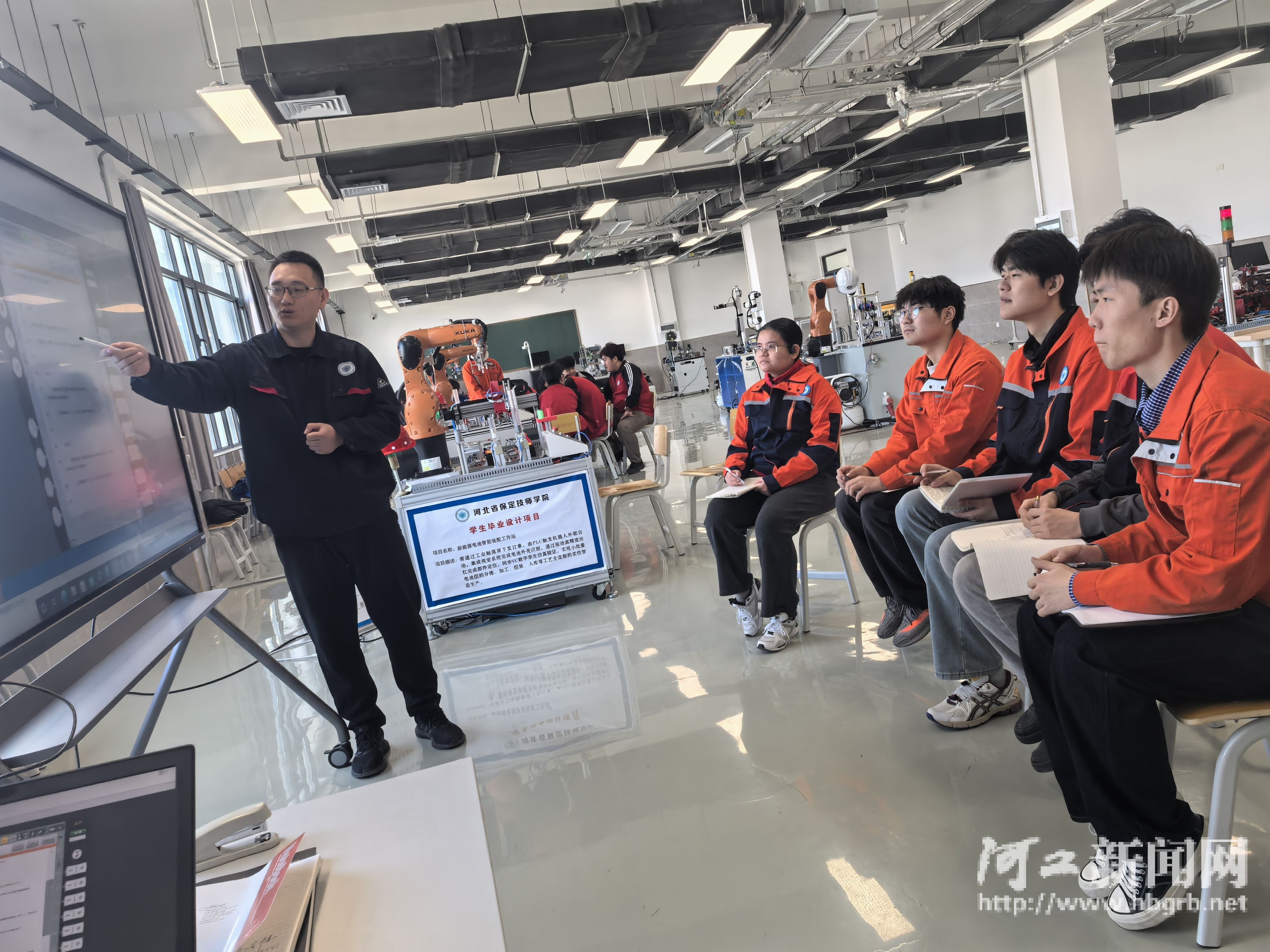 王宇昊毕业于秦皇岛职业技术学院,也曾在毕业后求职受挫。现在,在面对名企招聘时,他底气十足,这种底气来源于“硬核”的实力。在大学生技师班学习期间,他们参与了包括风帆电池机器人分拣项目在内的多个实战课题。