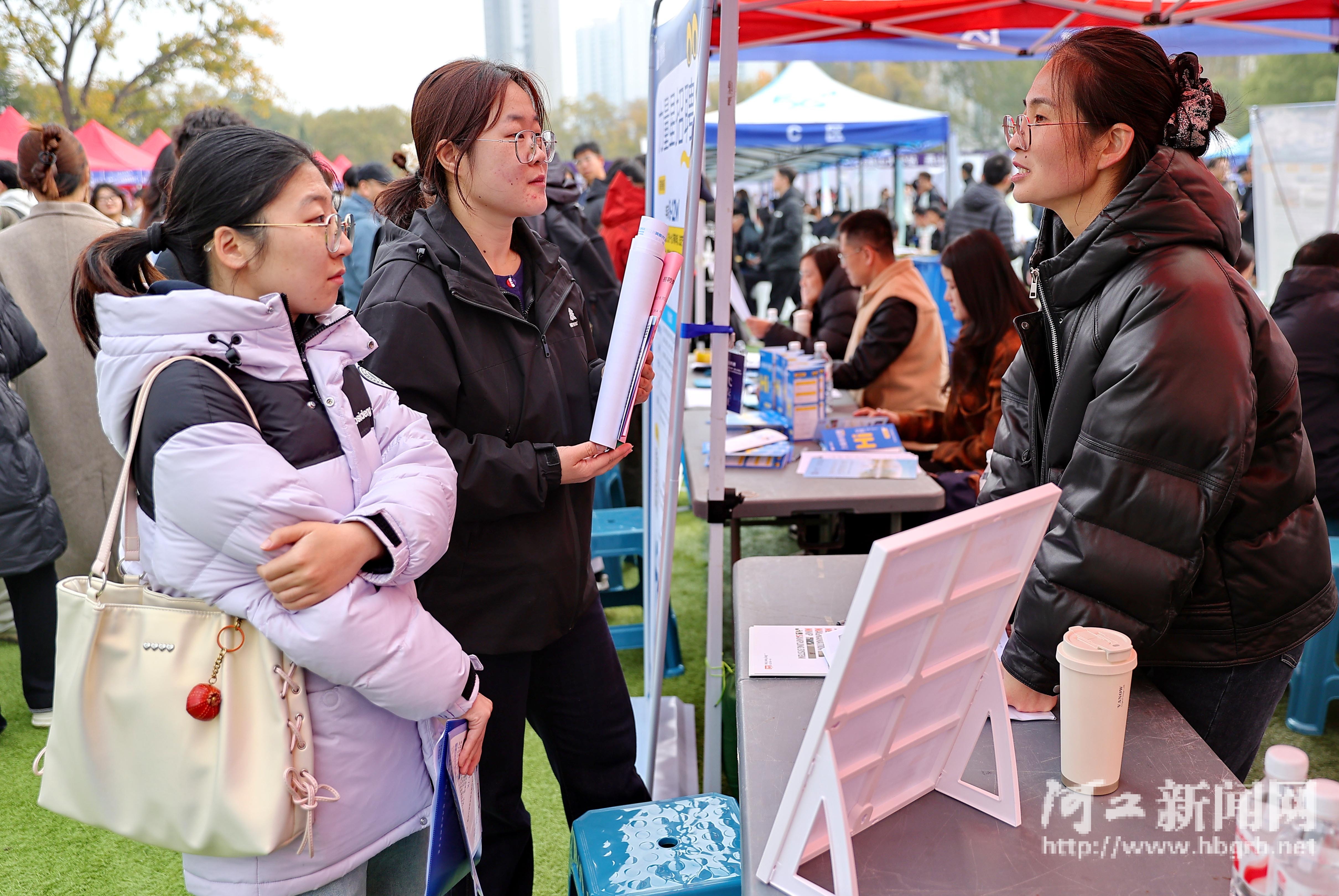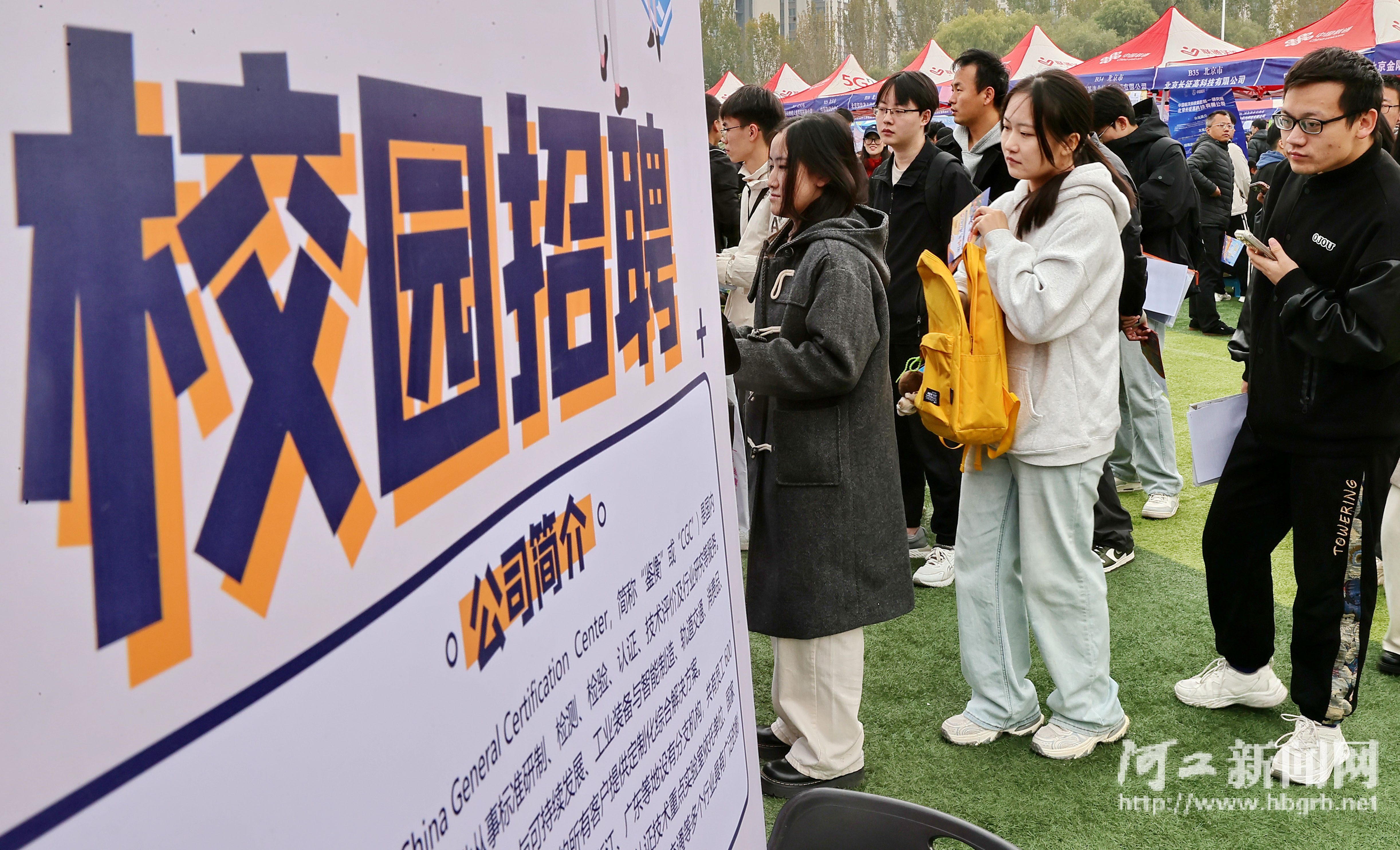 10月25日,“职引未来—全国城市巡回招聘(燕山大学站)”在燕山大学举行。图为求职者在招聘会现场了解岗位信息。