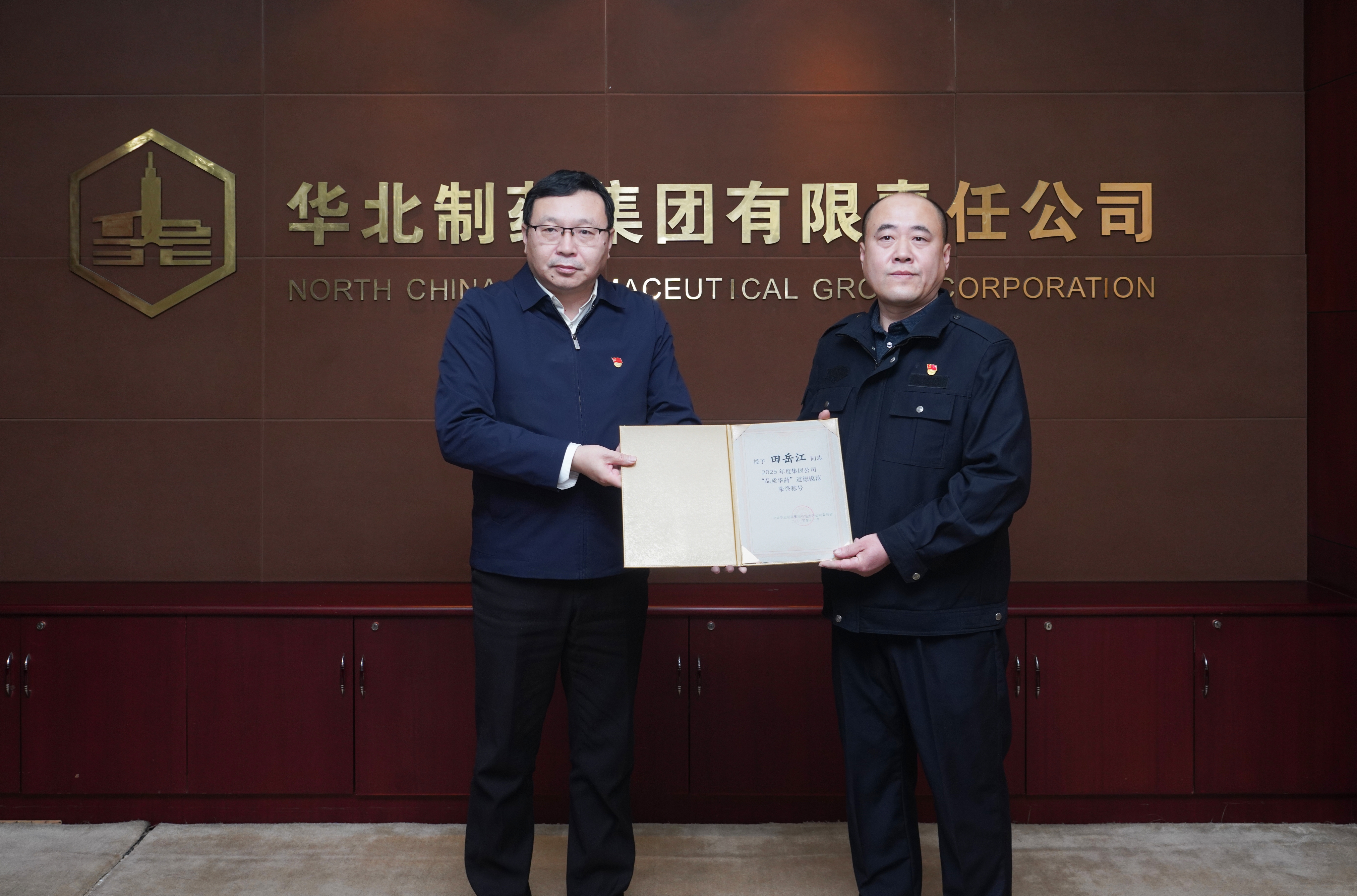 田岳江(右)被授予2025年度“品质华药道德模范”荣誉称号。