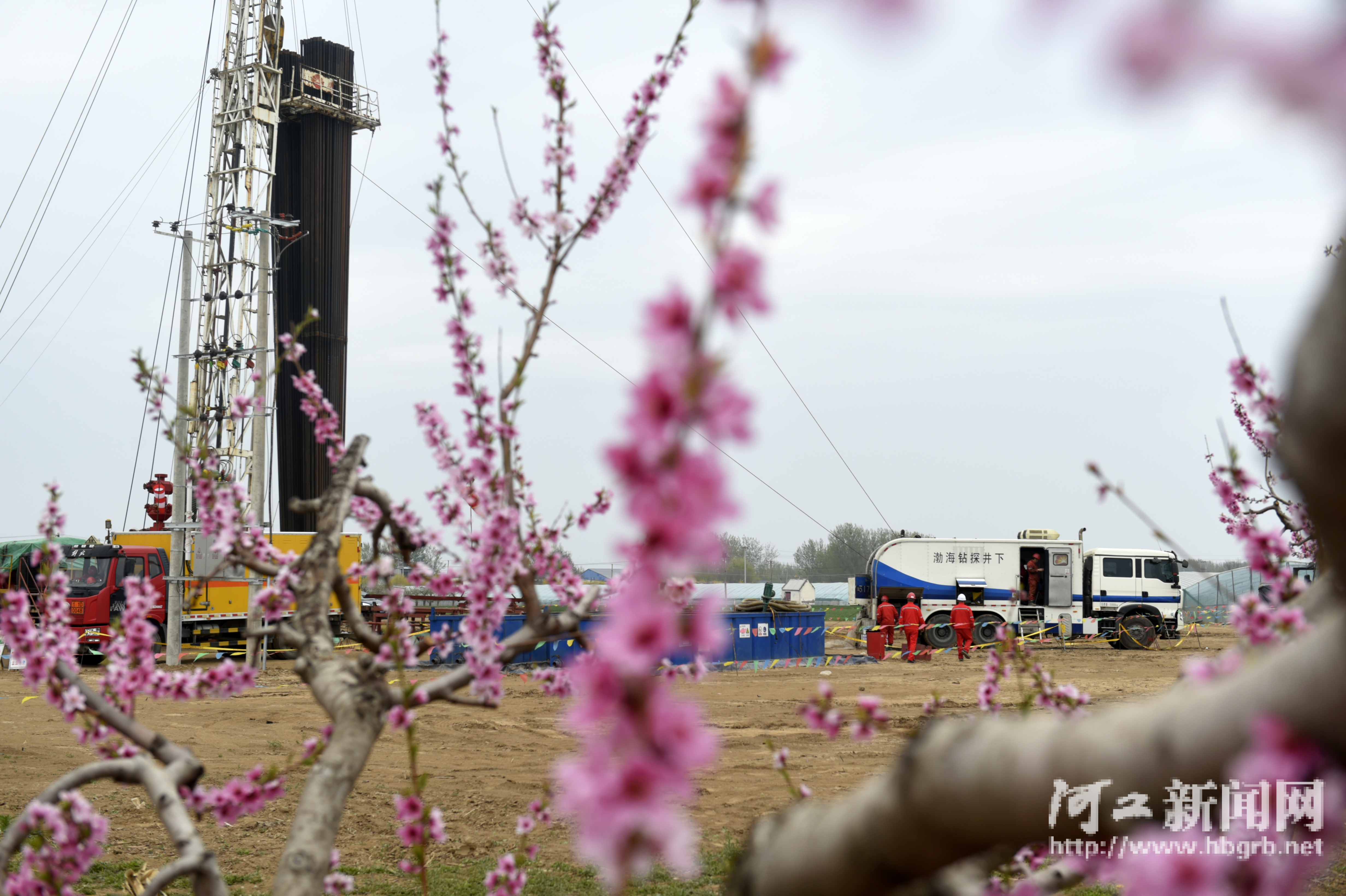 4月9日,中国石油华北油田采油三厂油区,桃花争春促上产。