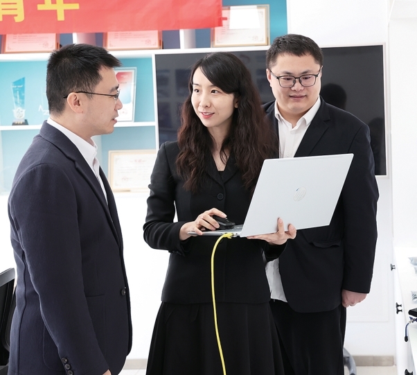初见闫卓旭,一袭剪裁精致的黑色职业装,过肩长发柔顺垂落,微微上扬的嘴角带着笑意。与人交流时,她的热忱与亲和力如春风拂面,让人很难将她与高深的技术难题联系起来。