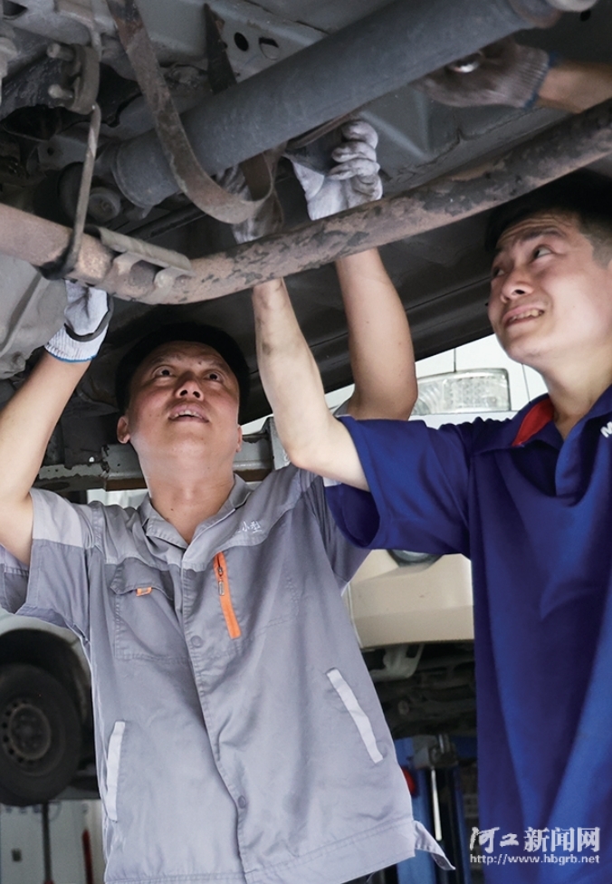 凭着这股子不服输的劲头,经过三年多的努力,李海龙从连修车工具都认不全的“门外汉”成长为公司的修车骨干。如今,他已经是公司维修故障排查小组的组长,手握汽车维修技师、福田品牌认证技师、新能源车维修资质三个资质证。每年经他手修的车得有几百台,客户满意率近乎百分之百。