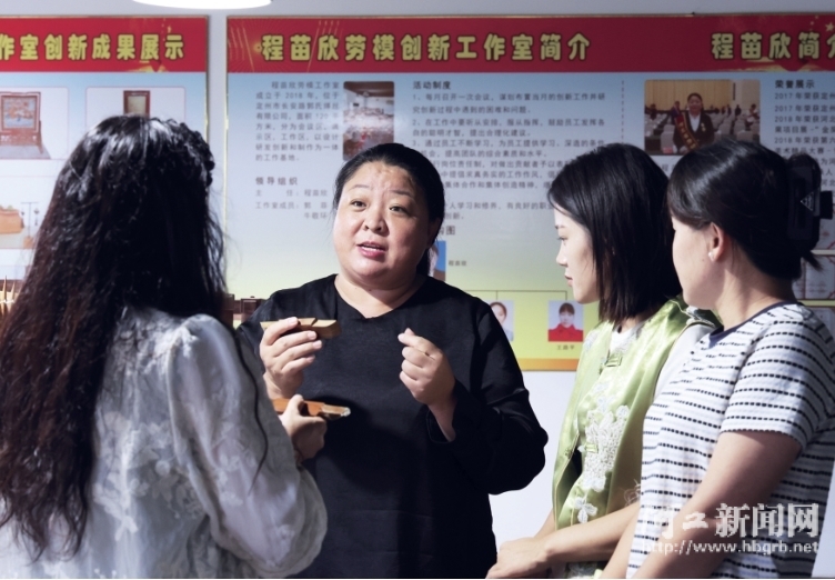 程苗欣在创新工作室为徒弟们讲解缂丝制作技法