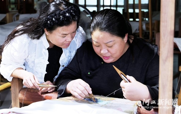 这正是程苗欣最欣慰的事。“缂丝的根在定州,得让家乡人把这项手艺接过去、传下去。”为了方便需要照顾家庭的员工,她把缂丝机送到学员家中,让她们足不出户就能工作;员工遇到技术难题时,她还会通过视频远程指导,及时解决问题,确保作品质量。