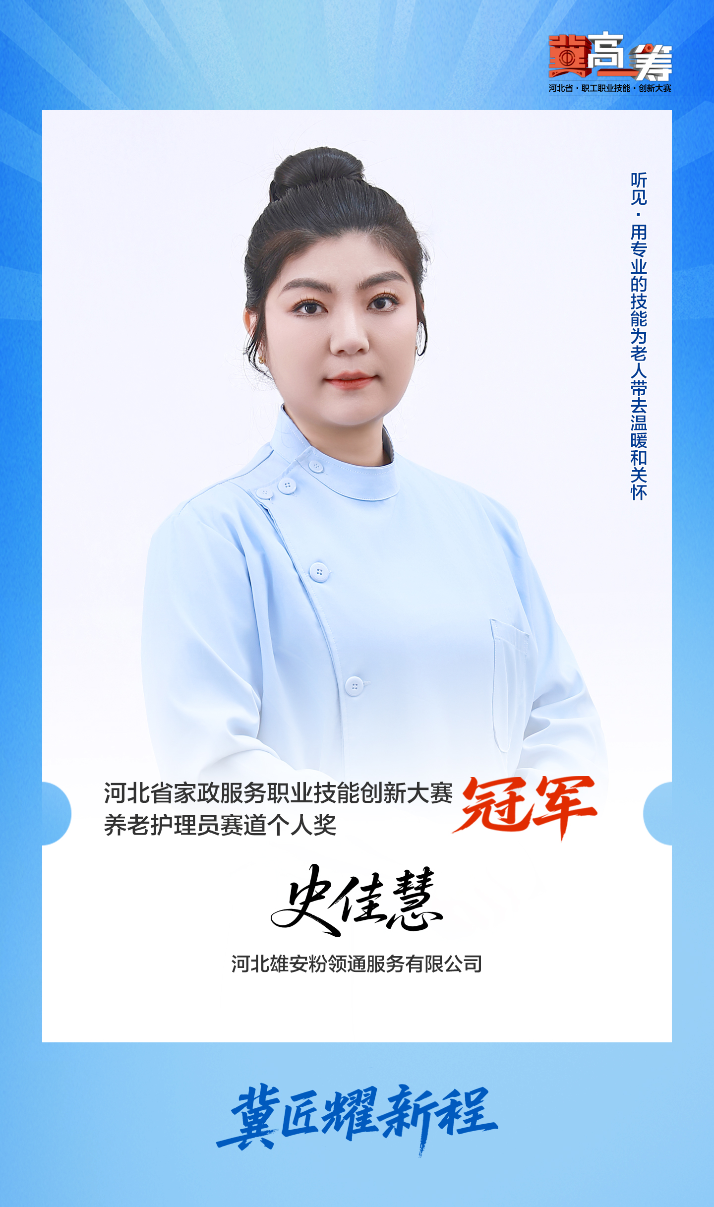 《“冀”高一筹》河北省家政服务职业技能创新大赛养老护理员赛道个人奖冠军