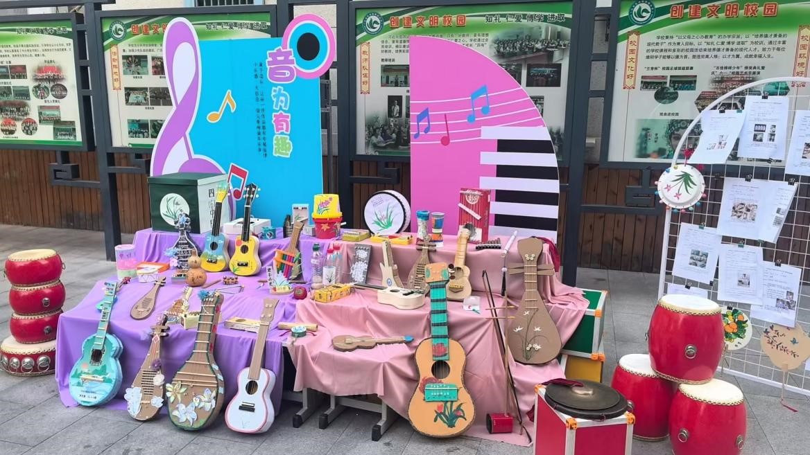 活动现场亮点纷呈、特色鲜明:一年级同学以自然为素材,玩转树叶贴画、创意风铃、手工雨伞等作品,将童真巧思融入自然之美;二年级聚焦兰花主题,全员动手制作迷你兰花,再携手拼接成巨型兰花作品,用协作诠释创意,用细节彰显兰韵;三年级打破材料局限,以彩泥为主,搭配黏土、废旧泡沫、棉花等多元素材,打造出形态各异的创意兰花,解锁手作新玩法;四年级走进乐器世界,探索发声原理,亲手制作简易乐器并登台展示,让科学与艺术碰撞出美妙乐章;五年级化身“地球探索家”,通过模型还原、绘画解读等形式,探寻地球演化的神奇密码;六年级变身“生态设计师”,巧制专属生态瓶,搭建微型自然王国,在实践中感悟生态平衡的科学真谛。