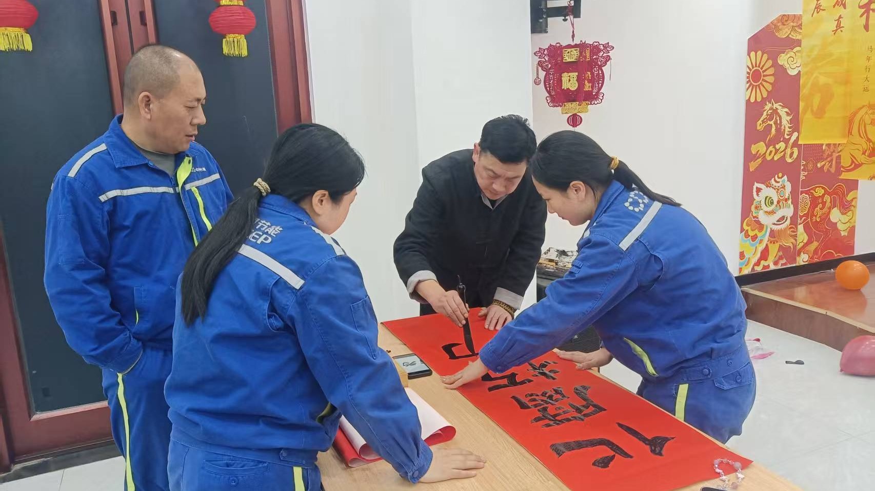 工会每年都惦记着我们一线职工,送春联、送温暖,让我们真切感受到了‘娘家人’的关爱。”近日,肃宁县总工会联合雅轩书画院举办“送万福·进万家”新春送福活动,华斯控股股份有限公司职工李师傅收到春联后高兴地说。活动现场翰墨飘香,暖意融融。书法家们挥毫泼墨,将美好的祝愿凝于笔端。
