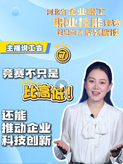为深入贯彻《河北省企业职工职业技能竞赛促进条例》(以下简称《条例》),充分发挥职工职业技能竞赛在提升职工技能素质、推动企业创新发展和产业转型升级中的积极作用,扎实推进... [详细]